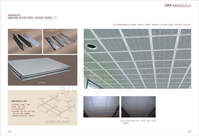 我司專業(yè)研制、開發(fā)生產(chǎn)及銷售鋁單板、鋁天花、鋁板幕墻、鋁扣板、掛片天花、鋁方通、條扣天花、格柵天花、方板天花、輕鋼龍骨、烤漆龍骨、圓管天花等金屬天花的現(xiàn)代化企業(yè)。